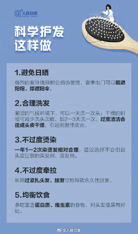 今天是全國護發日,一起來守護我們的發際線吧!①正常發際線通常為眉上4指寬;②熬夜、過量飲酒、頻繁燙染、壓力大是年輕人脫發的四個重要原因;③盲目用生姜黑芝麻丸或加重脫發……了解“頭頂大事”守住發際線,一起科學護發!(人民日報)