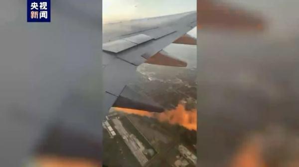 福克斯電視臺發(fā)布的一段視頻中,飛機(jī)右翼拉出白煙,不時冒出火焰。美國有線電視新聞網(wǎng)發(fā)布的機(jī)上乘客拍攝的另一段視頻顯示,客機(jī)右側(cè)一個發(fā)動機(jī)冒出橙黃色火焰,此時客機(jī)尚處于爬升階段,地面建筑清晰可見。