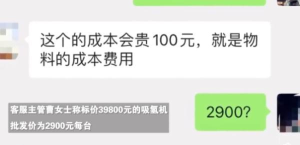 記者假裝買家,與吸氫機(jī)的廠家聯(lián)系,廠家說官網(wǎng)售價(jià)39800元一臺的吸氫機(jī),若用于開店批量購買,價(jià)格為2900元每臺,還強(qiáng)調(diào)“你們出售時(shí)價(jià)格最好不要定得太低”。