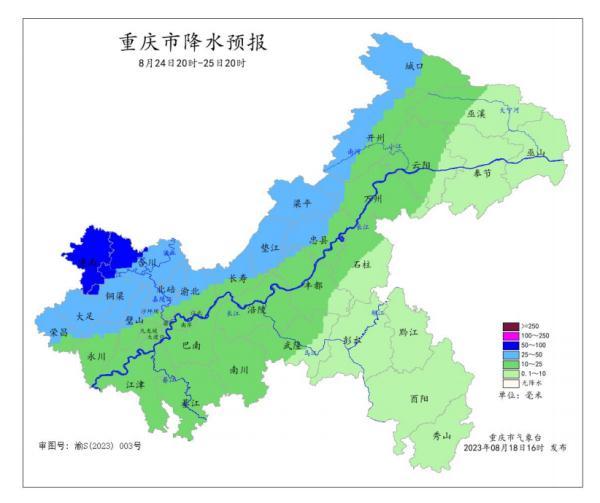24日20時—25日20時全市降水預報圖。重慶市氣象臺供圖
