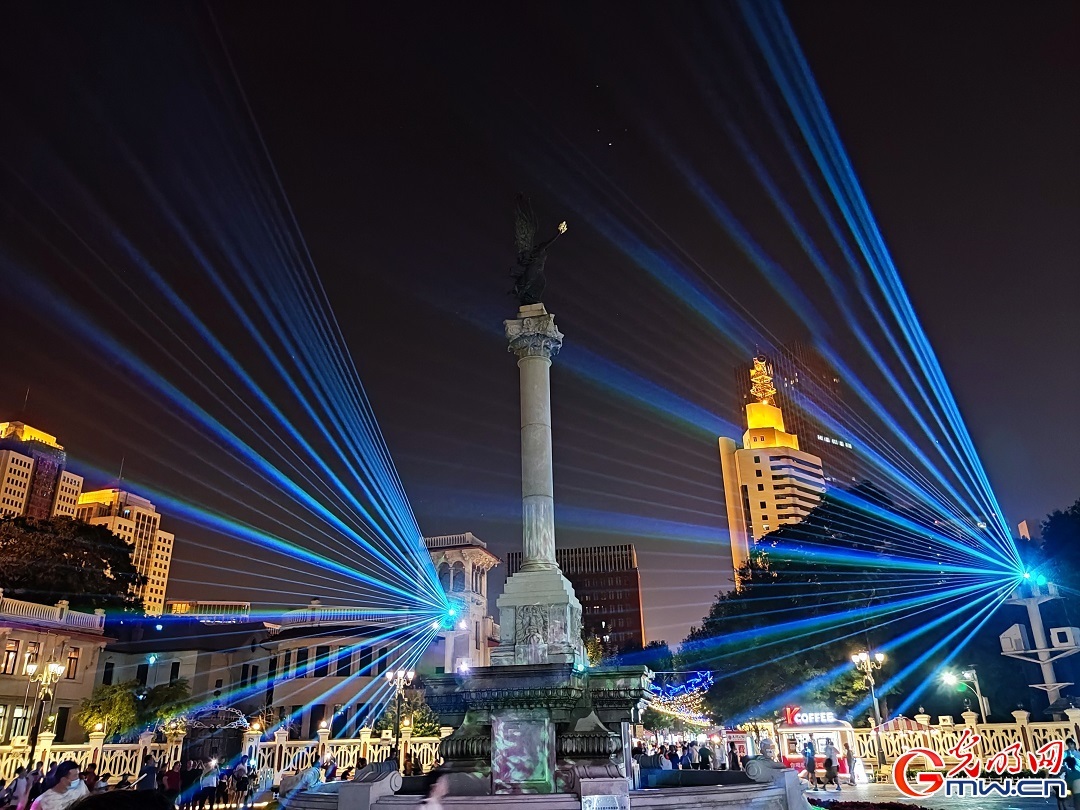 圖為天津意式風情區馬可波羅廣場燈光秀展示。