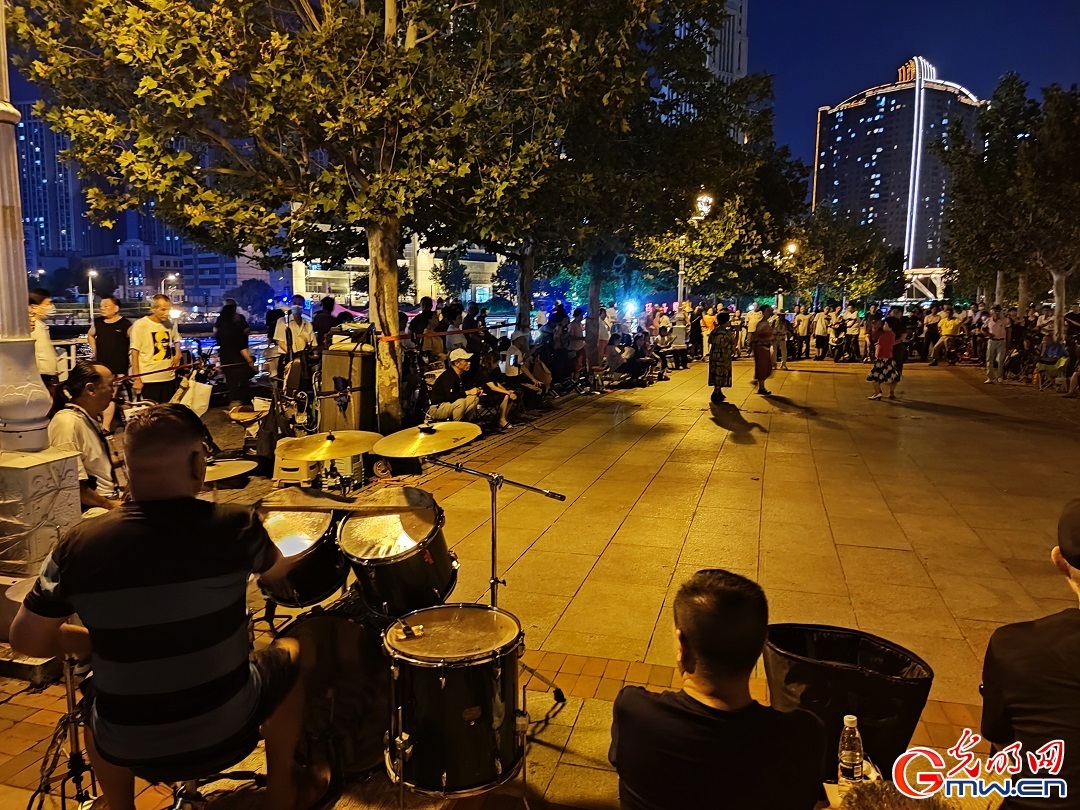 圖為天津市民在海河沿岸開展自發性娛樂活動。