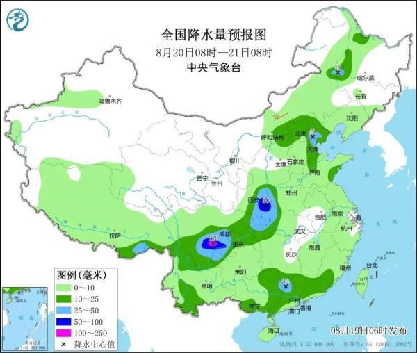 據中央氣象臺預報,8月20日20時至21日20時,黑龍江西南部、吉林西部、遼寧大部、河北東部、北京、天津、山東、江蘇北部、河南大部、陜西南部、四川盆地南部、西藏中南部、云南大部、貴州西部、湖北大部、湖南大部、廣西北部、廣東西北部、福建大部等地部分地區有中到大雨,其中,河南西南部、陜西東南部、四川盆地南部等地局地有暴雨。