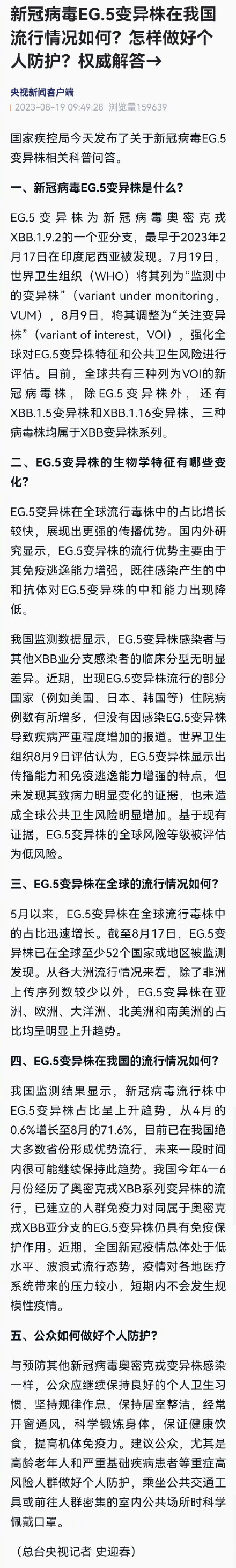 國家疾控局回應(yīng)新冠EG.5變異株:短期內(nèi)不會發(fā)生規(guī)模性疫情。看如何做好個人防護!