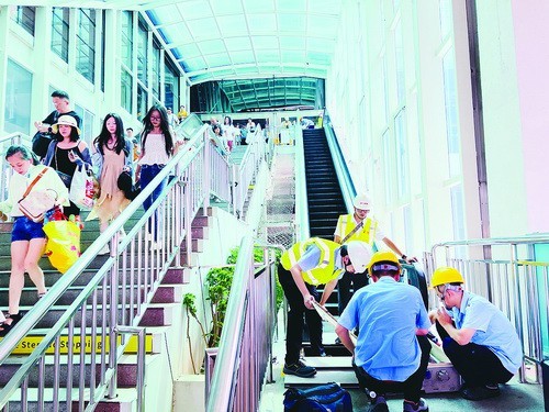 除了檢查設備,檢驗人員還要求使用單位和維保單位對穿著長裙、洞洞鞋、拖鞋的游客做好提醒和風險防范措施,重點監控兒童較多的區域,防止兒童在長扶梯或自動人行道上打鬧而發生事故,并協助維保單位完善電梯突發情況應急預案。