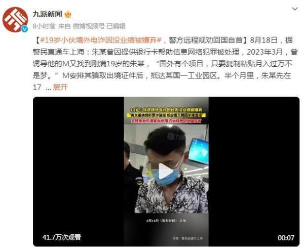 8月18日,據(jù)警民直通車上海:朱某曾因提供銀行卡幫助信息網(wǎng)絡(luò)犯罪被處理,2023年3月,曾誘導他的M又找到剛滿19歲的朱某,“國外有個項目,只要復制粘貼月入過萬不是夢。”M安排其騙取出境證件后,抵達某國一工業(yè)園區(qū)。半個月里,朱某先在17樓負責搜集外國人賬號,聊天制造“戀愛”錯覺,也就是所謂的“殺豬盤”。“一周后,因為我英文實在不行,主管華仔給我換到了18樓彩票詐騙組,第二天又覺得我反應(yīng)慢把我踢回19樓殺豬盤組。”4月中旬,華仔同意其交2千美元留下護照可離開。回國后朱某已被逮捕,但他說心里很平靜。據(jù)悉,該案其他嫌疑人也已刑拘。
