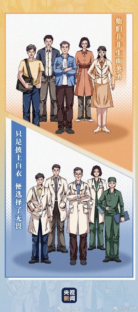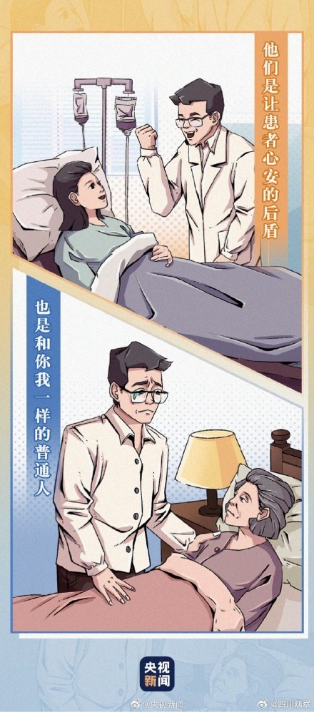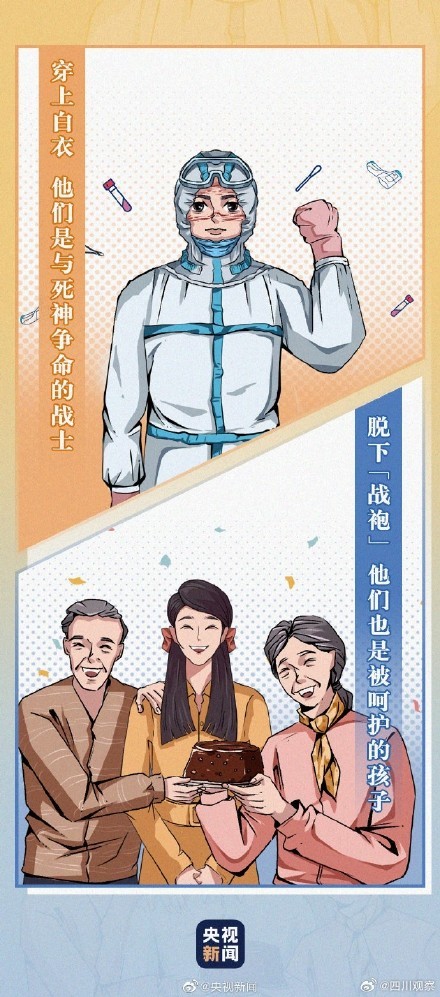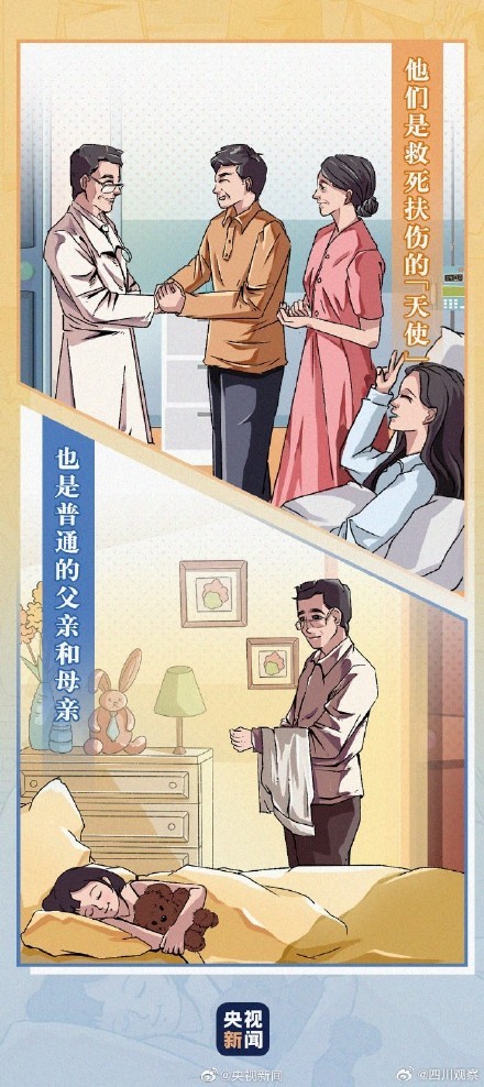 他們是救死扶傷的“天使”,也是父親和母親;他們是與死神爭分奪秒的戰士,也是被呵護的孩子。夢想拐了個彎當上了醫生他們并非生而英勇,只是選擇了無畏。 致敬醫者仁心! (圖源:央視新聞)