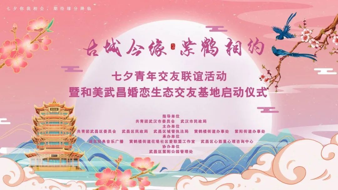 武昌區(qū)民政局攜手團區(qū)委、區(qū)城管局、黃鶴樓街道、紫陽街道共架鵲橋,誠邀武昌單身青年一起奔赴一場“古城今緣·紫鶴相約——七夕青年交友聯(lián)誼活動”的浪漫之約,在風光旖旎的紫陽公園共建湖北省首個和美武昌婚戀生態(tài)交友基地。