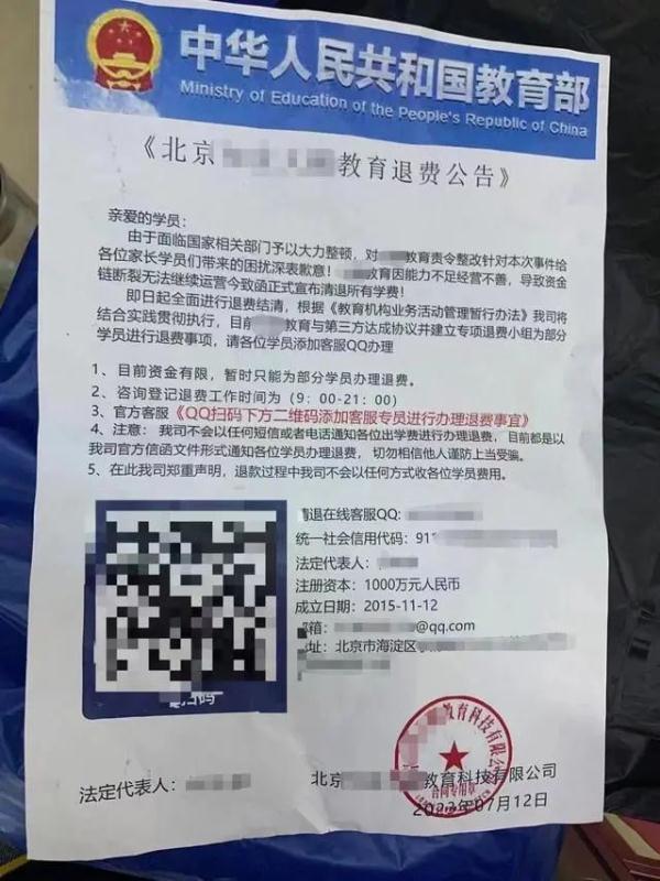 1、篩選人群:騙子通過非法渠道獲取培訓機構學員信息,偽造“退費公告”寄遞給受害人,要求受害人添加“客服”QQ或微信辦理“培訓退費”。