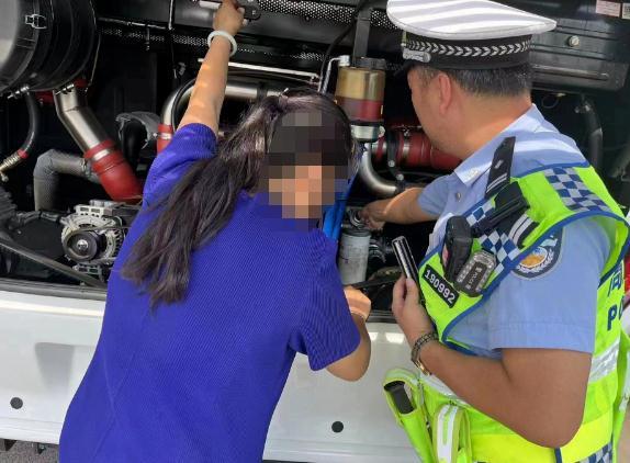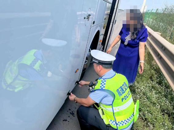 8月17日中午12時許,交警高速支隊海濱大隊交警通過三級指揮平臺視頻巡查發現,一輛大客車停在高速公路應急車道內,立即通知當時正在巡查途中,距離此處最近的警長王吉成趕赴處置。