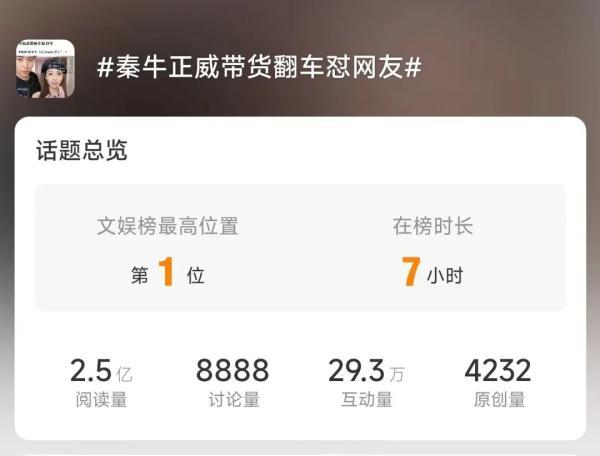 當天#秦牛正威帶貨翻車懟網友#