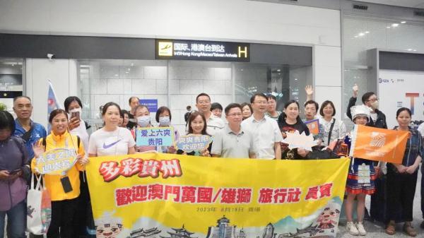 本次航班上共搭乘了澳門入黔的旅客共169人,其中澳門旅游團隊70人。接下來他們將前往烏蒙大草原、織金洞、遵義會址、青巖古鎮等地開啟“多彩貴州”之旅。