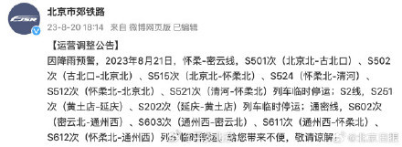 據(jù)@北京市郊鐵路 消息,因降雨預(yù)警,2023年8月21日,部分列車臨時(shí)停運(yùn)——懷柔-密云線 S501次(北京北-古北口) S502次(古北口-北京北) S515次(北京北-懷柔北) S524次(懷柔北-清河)S512次(懷柔北-北京北) S521次(清河-懷柔北) S2線 S251次(黃土店-延慶) S202次(延慶-黃土店) 通密線S602次(密云北-通州西) S603次(通州西-密云北) S611次(通州西-懷柔北) S612次(懷柔北-通州西)