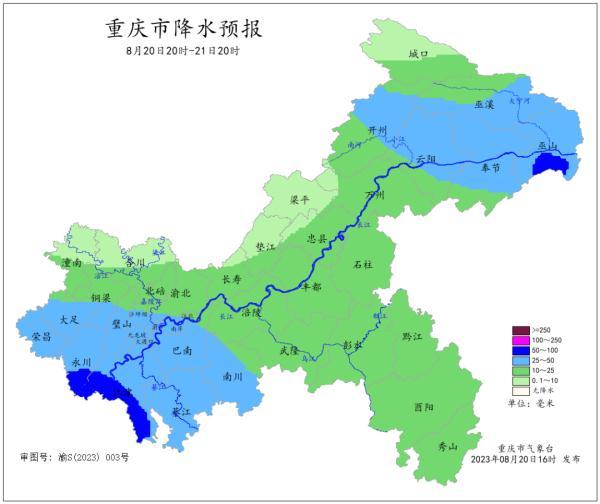 據(jù)重慶市氣象臺(tái)預(yù)計(jì),20日夜間到21日白天,各地陣雨或雷雨,部分地區(qū)雨量可達(dá)大雨,永川區(qū)、江津區(qū)、巫山縣的部分鄉(xiāng)鎮(zhèn)暴雨;雷雨時(shí)局地伴有短時(shí)強(qiáng)降水、陣性大風(fēng)等強(qiáng)對(duì)流天氣,要注意防范。