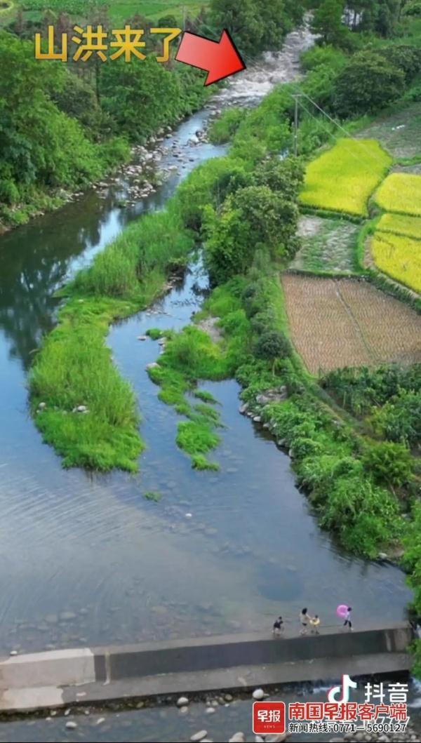 20日,記者聯系上陸先生。他介紹,16日傍晚6時許,他在灌陽縣福星村的桃林灣航拍時發現,1公里外有湍急的水流傾瀉而下,而在下游玩水的一名媽媽和兩個孩子看不見水流的變化。