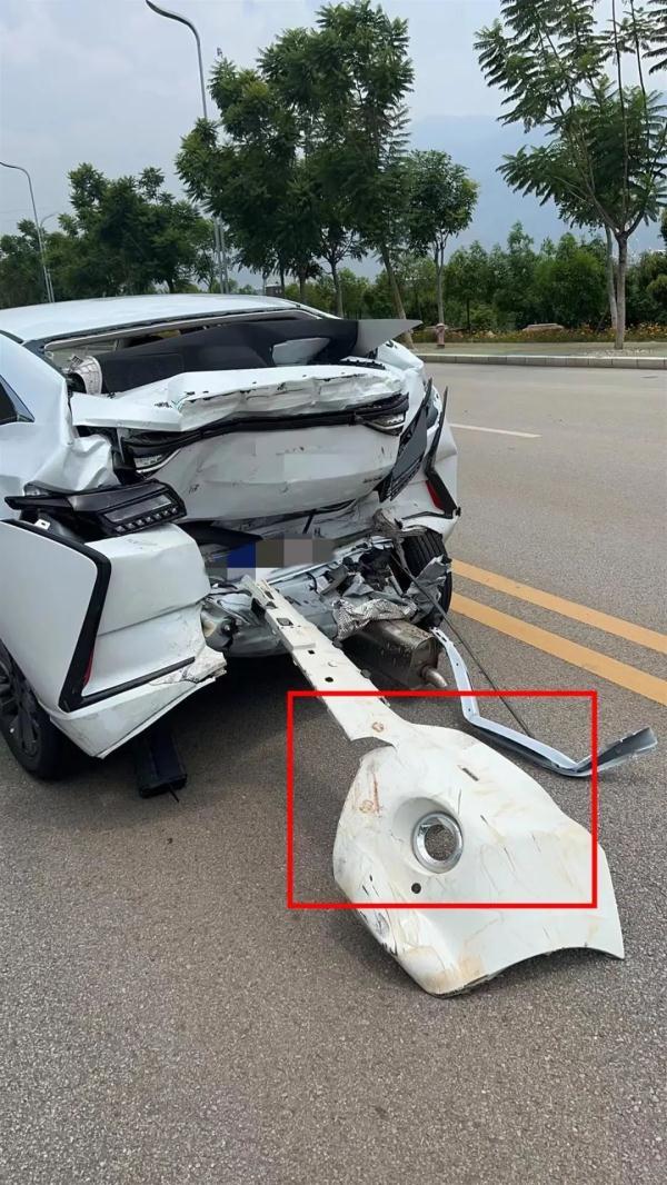 王先生表示,當時車里就自己一人,腿部有擦傷。下車后,他發現自己的車尾部受損嚴重,疑似肇事車的零部件還掛在了他的車上。隨后,交警趕到現場進行處置。