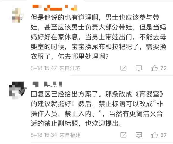 他表示,自己能理解母嬰室拒絕男士入內的目的,陌生男士進入母嬰室會對正在喂奶,特別是母乳親喂的“寶媽”造成困擾。但是,實際不少“寶爸”也有帶娃使用母嬰室的需求。