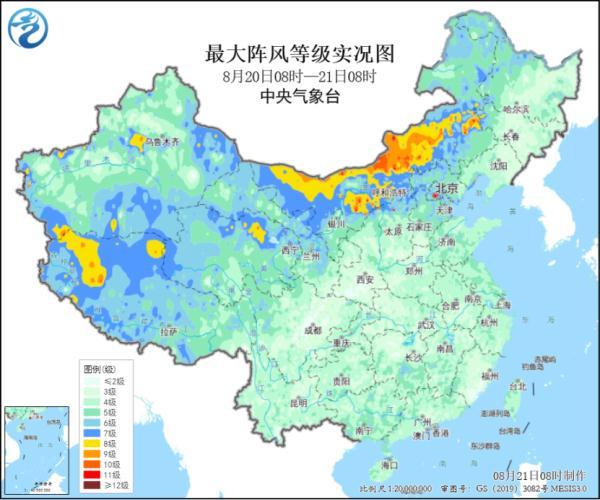 部分地區將有8至10級雷暴大風或冰雹天氣