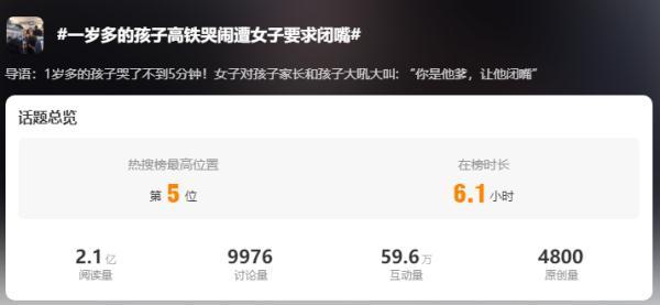 8月18日,事發湖南,一位女子嫌兩歲不到的孩子在高鐵上哭鬧吵到自己,與家長發生激烈爭執。