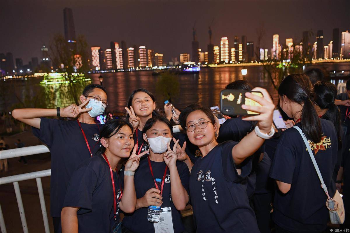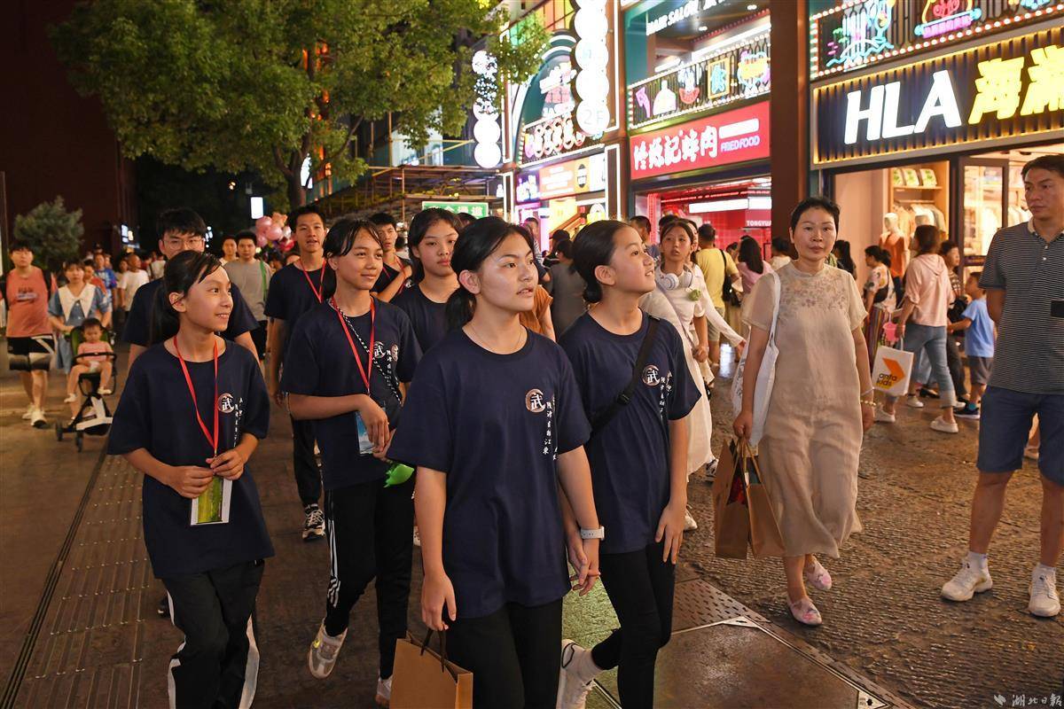 8月20日晚,“愛我中華”香港青少年軍精英湖北參觀交流團來到武漢漢口江灘,飽覽江城夜景;打卡江漢路步行街,感受大武漢夏夜風情。(湖北日報全媒記者 李溪 曹雯 攝)