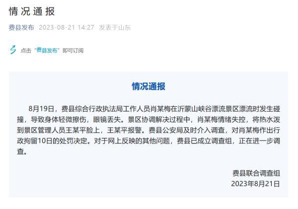 8月19日,山東臨沂費縣沂蒙山峽谷漂流景區,一名疑為當地某副局長家屬的女游客三次向景區工作人員潑熱水,引發廣泛關注。