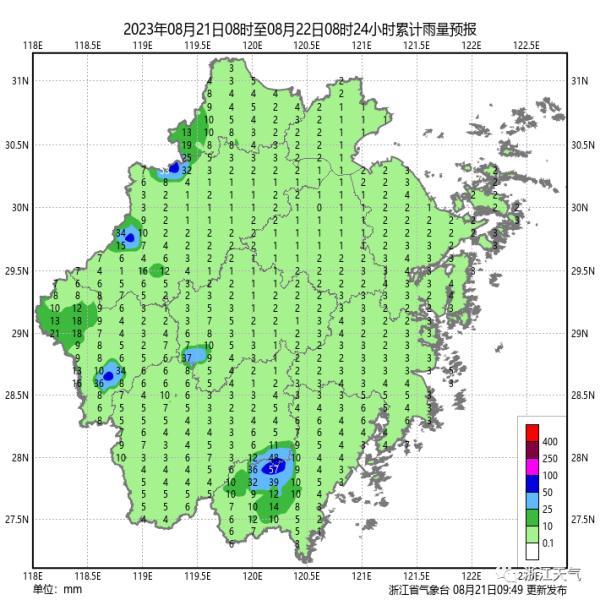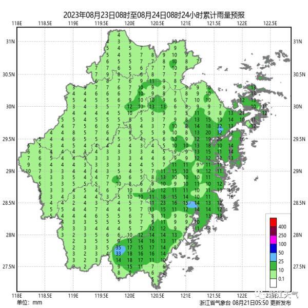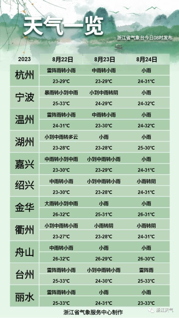 需要重點關注的是明天的降水,由于高空有冷空氣過境,會帶來范圍更廣、強度更大的系統性降水,浙中南和沿海地區還會出現局地大暴雨。該區域小伙伴多加留意,需注意防范短時強降水帶來的地質災害等不利影響。且這場系統性降水可能會持續到8月24日前后。