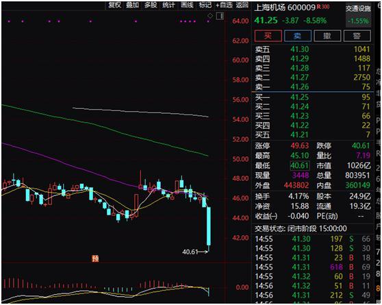 多數板塊下挫,券商、交通運輸等板塊跌幅居前,上海機場、白云機場股價重挫,盤中一度觸及跌停,當天兩家公司雙雙發布澄清公告。