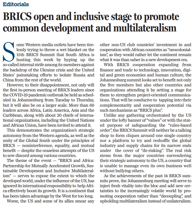 原文標題:BRICS open and inclusive stage to promote common development and multilateralism