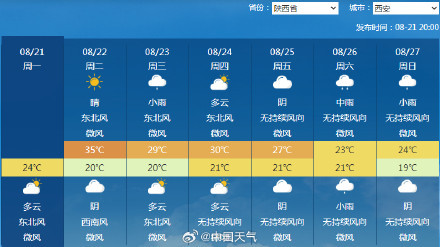 今后幾天北方多地氣溫將明顯下滑,西北、華北北部、東北多地最高氣溫會降到30℃以下,周末最高氣溫30℃線甚至?xí)蠓贤酥灵L江以南。比如陜西西安,今明天還是盛夏,之后在冷空氣和降雨影響下,熱意“冷卻”,26日最高氣溫或降至23℃,體感上從“桑拿天”直接“入秋”,短袖變長袖!