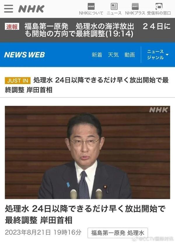據日本廣播協會(NHK)21日報道,日本首相岸田文雄在當天的記者會上稱,福島第一核電站核污染水排海已獲得漁民的一定理解,計劃最早從24日開始將核污染水排入海洋,目前正在對此進行最終協調。