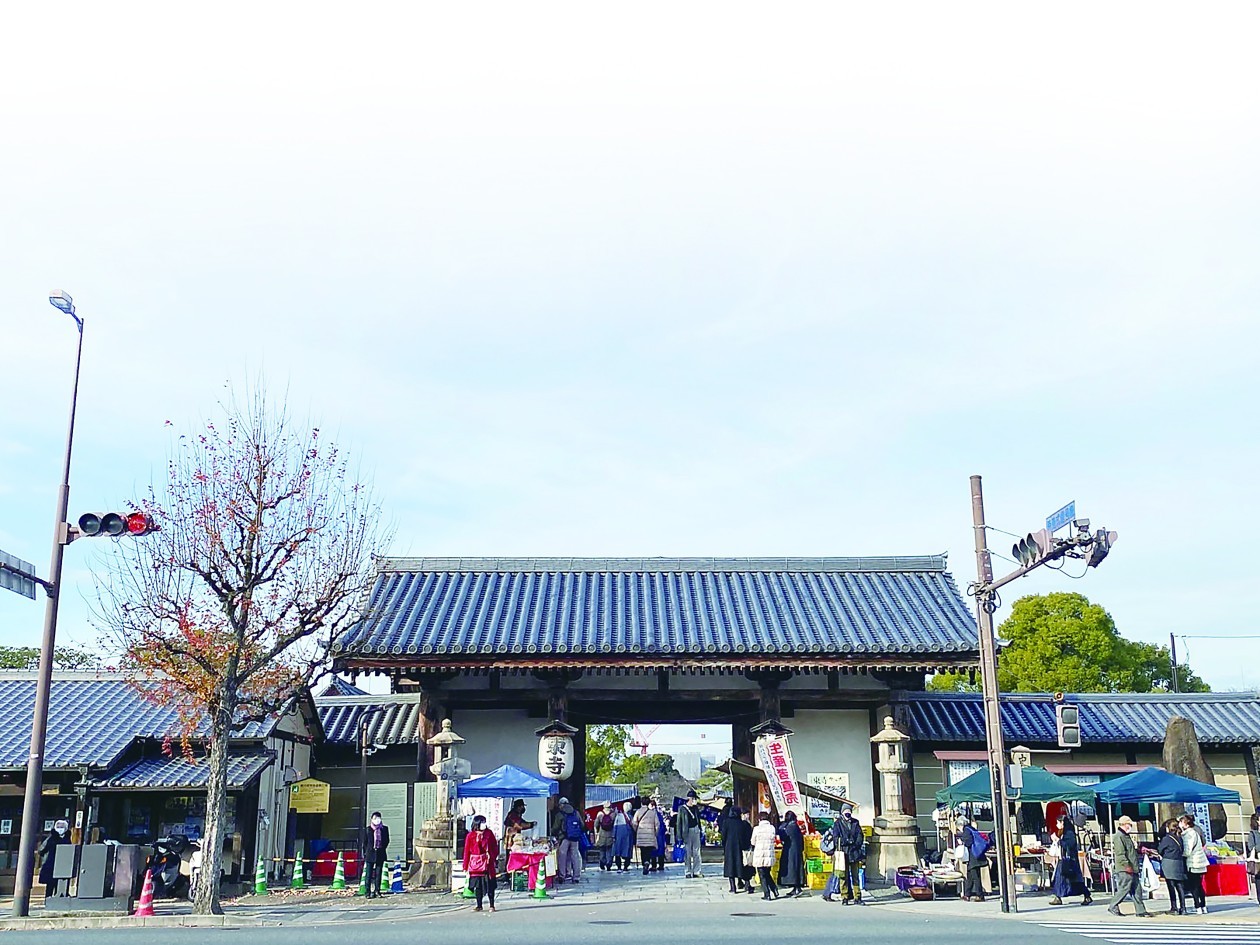 直到今天,日本仍在使用一個佛教詞語——緣日,意為神佛與世人的“有緣之日”。“弘法市”就是東寺一個重要的緣日。每月21日,無論刮風下雨,東寺都會舉辦“弘法市”。從正門到御影堂入口前,擠滿各種攤位。平均每次出攤的數(shù)量在1200個至1300個之間,迎來客人約20萬人次。