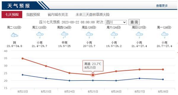 成都市氣象臺2023年08月22日10時00分發布高溫橙色預警信號:預計我市錦江區、青羊區、金牛區、武侯區、成華區、青白江區、高新西區、成都東部新區和高新南區的所有鎮(街道)未來24小時內最高氣溫將升至35℃以上。高溫時段主要出現在13時至18時。請注意防范高溫帶來的不利影響。