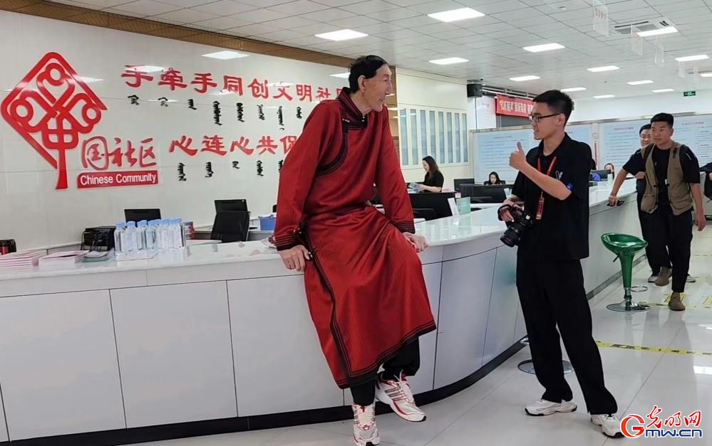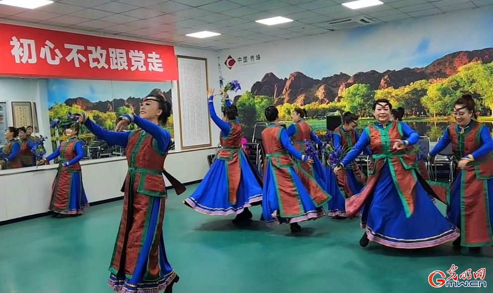 光明網訊(見習記者 王蕾)8月21日,“石榴花開 籽籽同心”網絡主題活動內蒙古站采訪團走進赤峰市松山區興安街道臨潢家園社區,走到社區門口,記者遠遠就聽到一陣極具民族特色的悅耳歌聲,原來,是烏蘭牧騎小分隊正在排練廳排演民族歌舞節目。