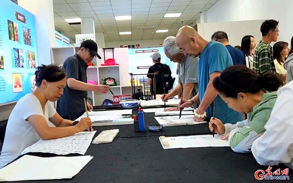 臨潢家園社區居民在書法練習室練習書法。王蕾攝