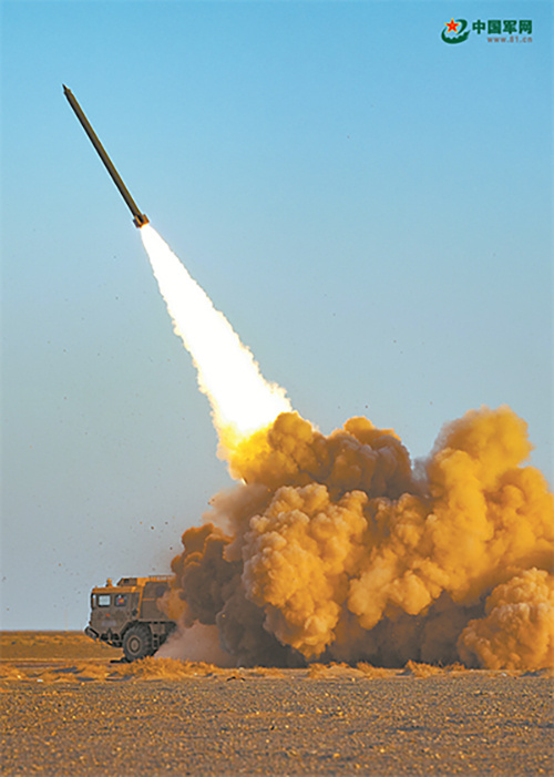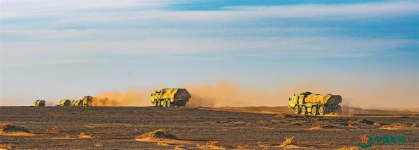 突然,一陣狂風卷著沙塵襲來。大風很可能影響射擊精度,各炮位接到命令,立即修訂射擊諸元。很快,數枚火箭彈呼嘯而出,對“敵”陣地進行遠程覆蓋,精準摧毀目標。