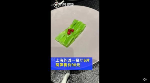 上菜后發(fā)現(xiàn)盤中僅有6根萵筍 ,售價(jià)98元引發(fā)熱議。