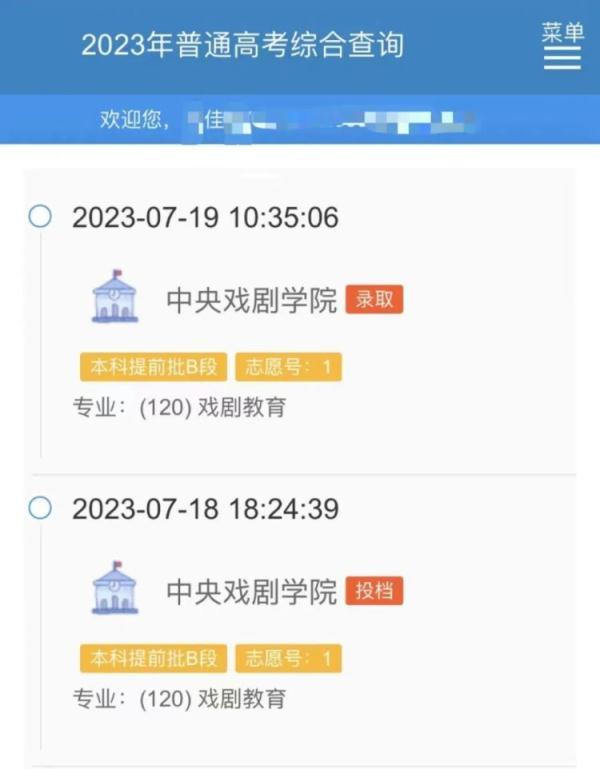 7月26日,佳佳拿到了中央戲劇學院戲劇教育專業的錄取通知書。