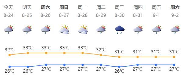 ?24日多云,有(雷)陣雨,氣溫27-33℃;
