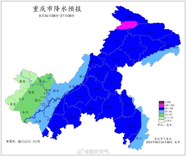 24日白天到夜間,西部大部地區(qū)中雨到大雨,潼南區(qū)、榮昌區(qū)的部分鄉(xiāng)鎮(zhèn)有暴雨,其余地區(qū)多云轉(zhuǎn)分散陣雨或雷雨,氣溫20~36℃;中心城區(qū)多云轉(zhuǎn)中雨,氣溫25~33℃。