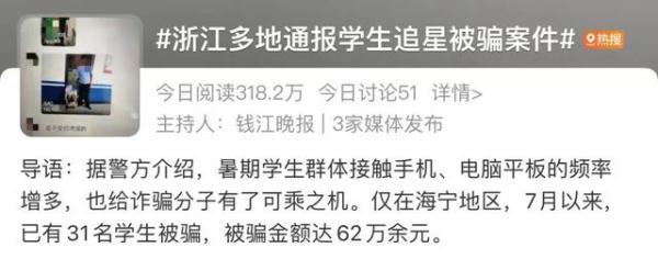 據警方介紹,暑期學生群體接觸手機、電腦平板頻率增多,給了詐騙分子可乘之機。僅在浙江海寧地區,7月以來,已有31名學生被騙,被騙金額達62萬余元。