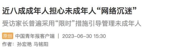 今年6月,《未成年人網絡權益保護及安全感滿意度調查報告》顯示,近八成成年人擔心未成年人“網絡沉迷”。
