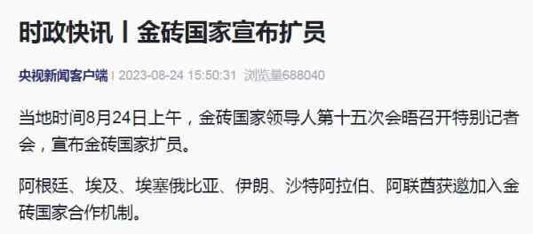 原標題:《時政快訊丨金磚國家宣布擴員》