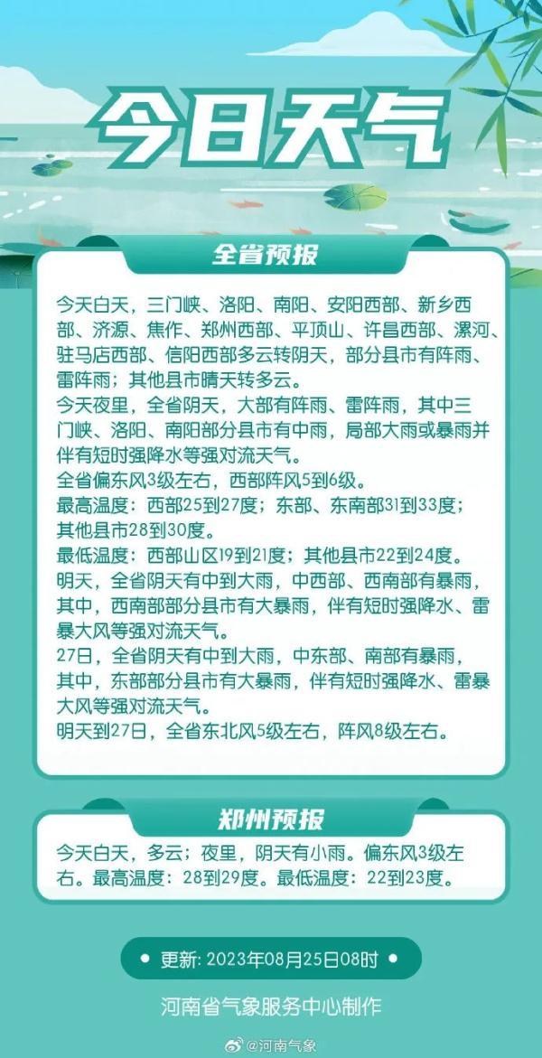今天夜里,全省陰天,大部有陣雨、雷陣雨,其中三門峽、洛陽(yáng)、南陽(yáng)部分縣市有中雨,局部大雨或暴雨并伴有短時(shí)強(qiáng)降水等強(qiáng)對(duì)流天氣。