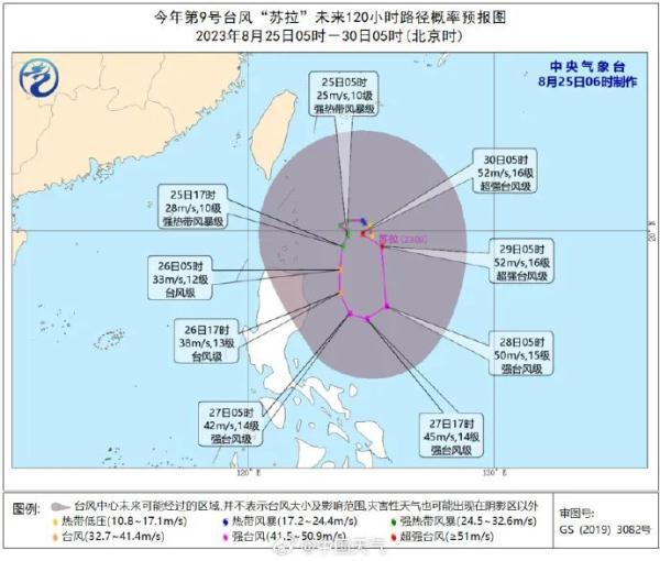 預計,“蘇拉”將先在菲律賓呂宋島東北部洋面徘徊,29日開始向北偏西方向移動,逐漸向臺灣東部沿海靠近,最強可達強臺風級或超強臺風級(45-52m/s,14-16級)。