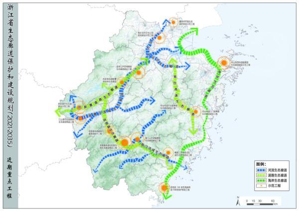 包括沿錢塘江、甌江、椒江、甬江、苕溪、運河、飛云江及鰲江水系形成的河流生態廊道。