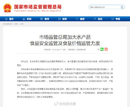 市場監管總局高度重視食品安全及價格監管工作。在前期對進口食品安全風險隱患排查整治的基礎上,部署各地市場監管部門進一步加大食品安全監管力度,督促食品生產經營者嚴格遵守食品安全法律法規及進口食品相關規定,嚴禁食品生產經營者采購、使用原產地為日本的水產品(含食用水生動物,下同)加工食品、制作餐食或進行銷售(含網絡銷售),加強市場銷售進口水產品食品安全抽檢監測,發現相關違法行為的,嚴格依法予以查處。