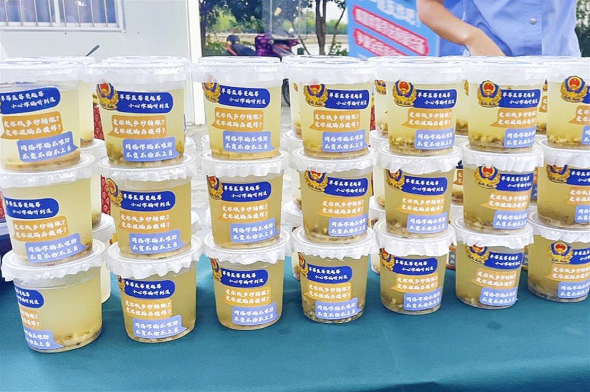 貼有反詐標(biāo)識的綠豆湯(通訊員供圖)