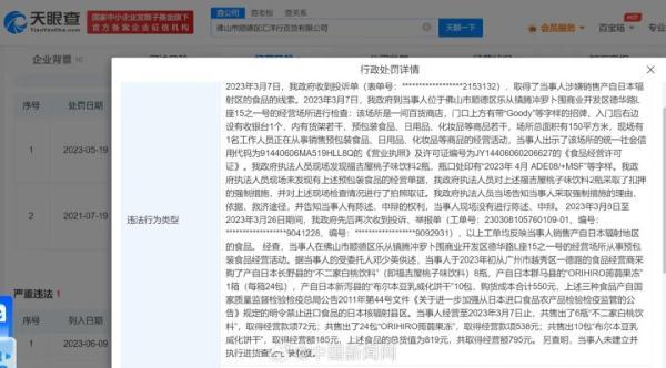 佛山市順德區(qū)匯洋行百貨有限公司因銷售采購(gòu)產(chǎn)自日本長(zhǎng)野縣的飲料等被監(jiān)管部門罰款1萬(wàn)元,后被列入嚴(yán)重違法失信企業(yè)名單;