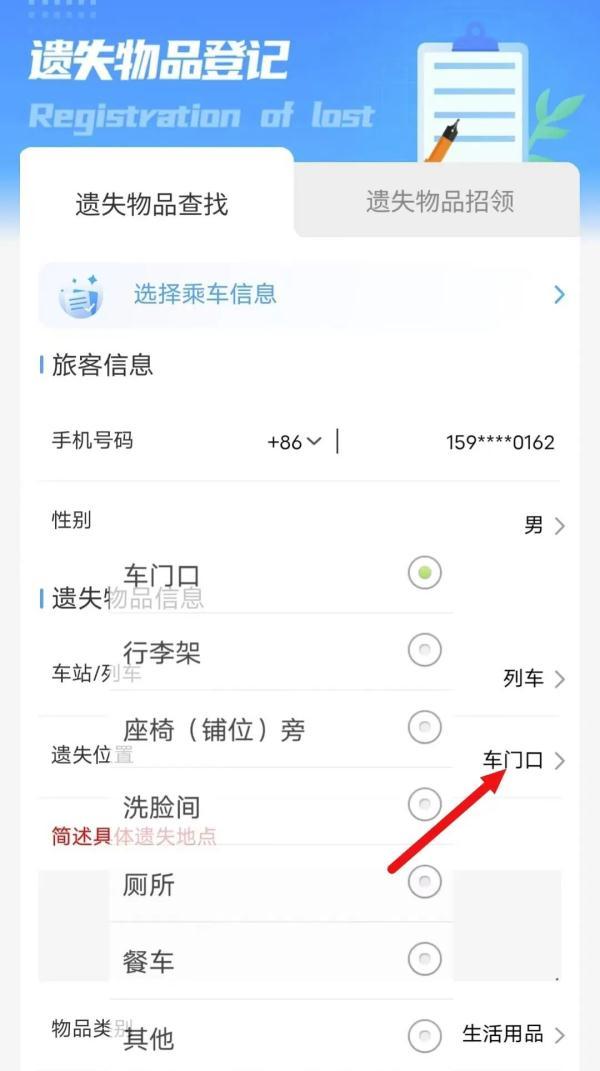 填寫旅客信息、遺失物品信息