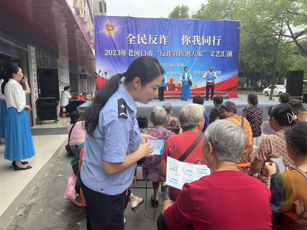 為進一步擴大防范電信詐騙宣傳覆蓋面,提高群眾識詐防騙意識,8月25日,湖北老河口警方聯合光化街道小東門社區,在老河口市秋豐路舉行“全民反詐 你我同行”文藝匯演。